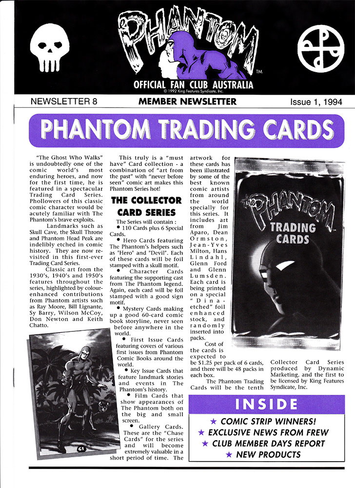Here we have several newsletter from two different Phantom fan clubs. The first is The Official Phantom Fan Club of Australia which began in 1991 in celebration of Frew Publications' 1000th issue, and ran until 1999 due to King Features not renewing the licence. It was run by a gift/ novelty company known as Famous Faces that also ran fan clubs for Elvis Presley, James Dean, Marilyn Monroe and others. A newsletter was sent out to all members with a total of 15 being produced, although the last of these was released in January of '98.