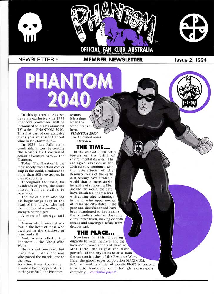 In 1994 this futuristic take on The Phantom debuted. This animated series was developed by Hearst Corporation with character designs by Peter Chung, creator and director of cult animated series Æon Flux.
