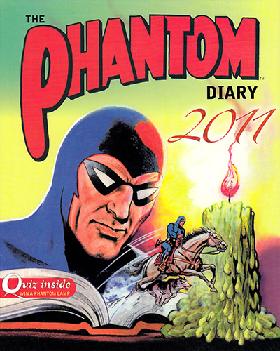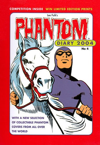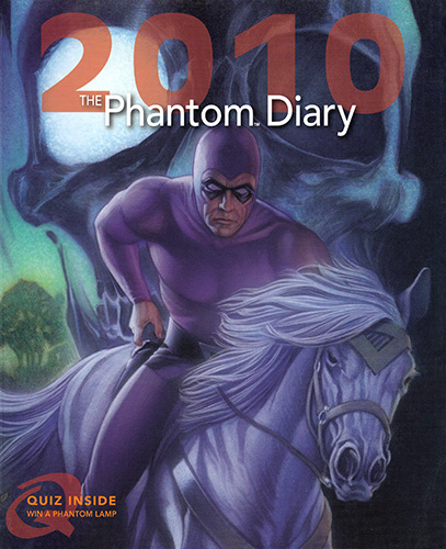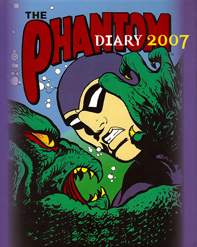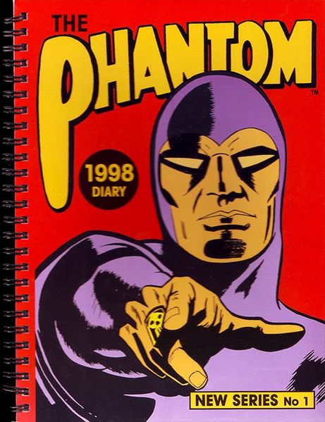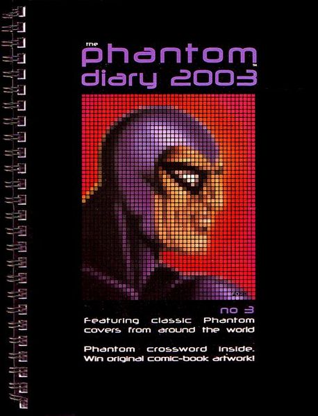 Beginning in 1993 and published almost annually by Mallon in Australia, the Phantom diary has become something of a staple for Aussie Phantom phans at Christmas time. The series began as oversized hardcover editions containting lots of background information and trivia about The Phantom.The 1998 edition moved to spiral binding and instead concentrated on cover art, reproduicing art from Phantom comic covers from around the world. 2005 then combined these two ideas together with ring binding and a hard cover. These editions also saw the return of trivia.